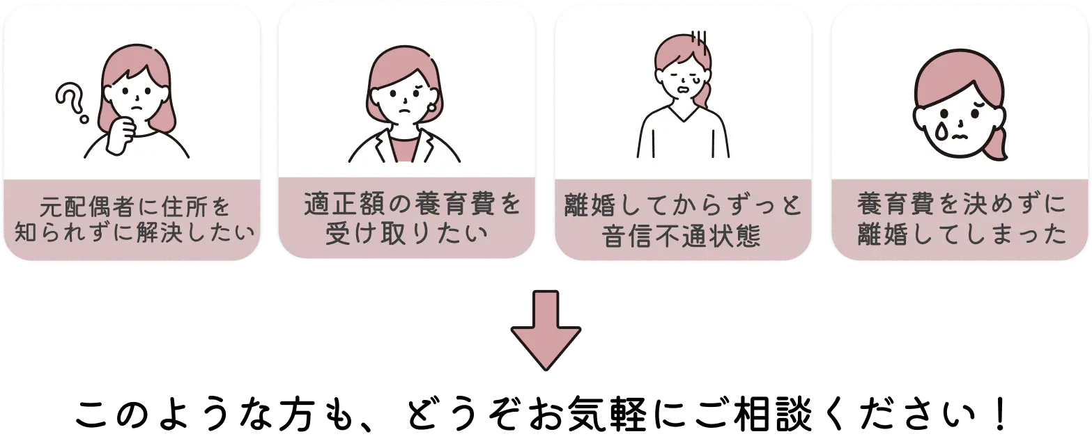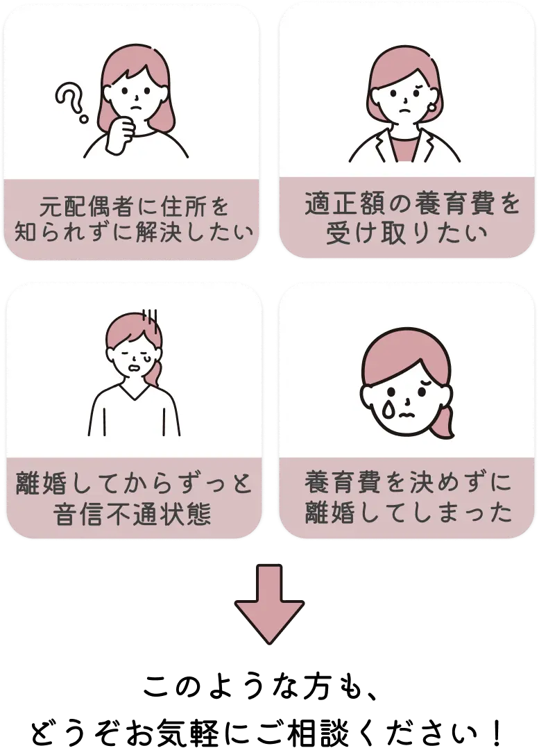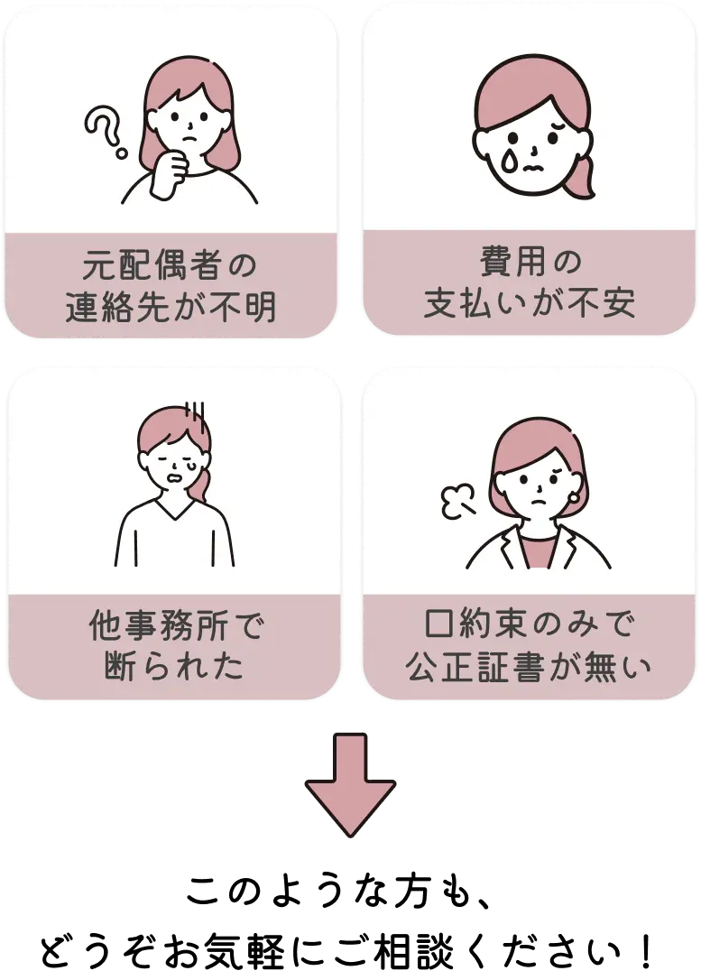 この費用のみで、元配偶者への養育費の請求・元配偶者との養育費の支払交渉をいたします。