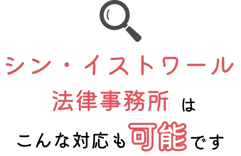シン・イストワール法律事務所は、最大限の調査を行い、妥協することのない徹底交渉を強みとしております。